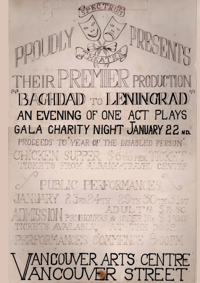Spectrum Theatre is currently digitising our archive, and if you have any information, photos, posters, etc., that you can send us copies of, we'd be most grateful.